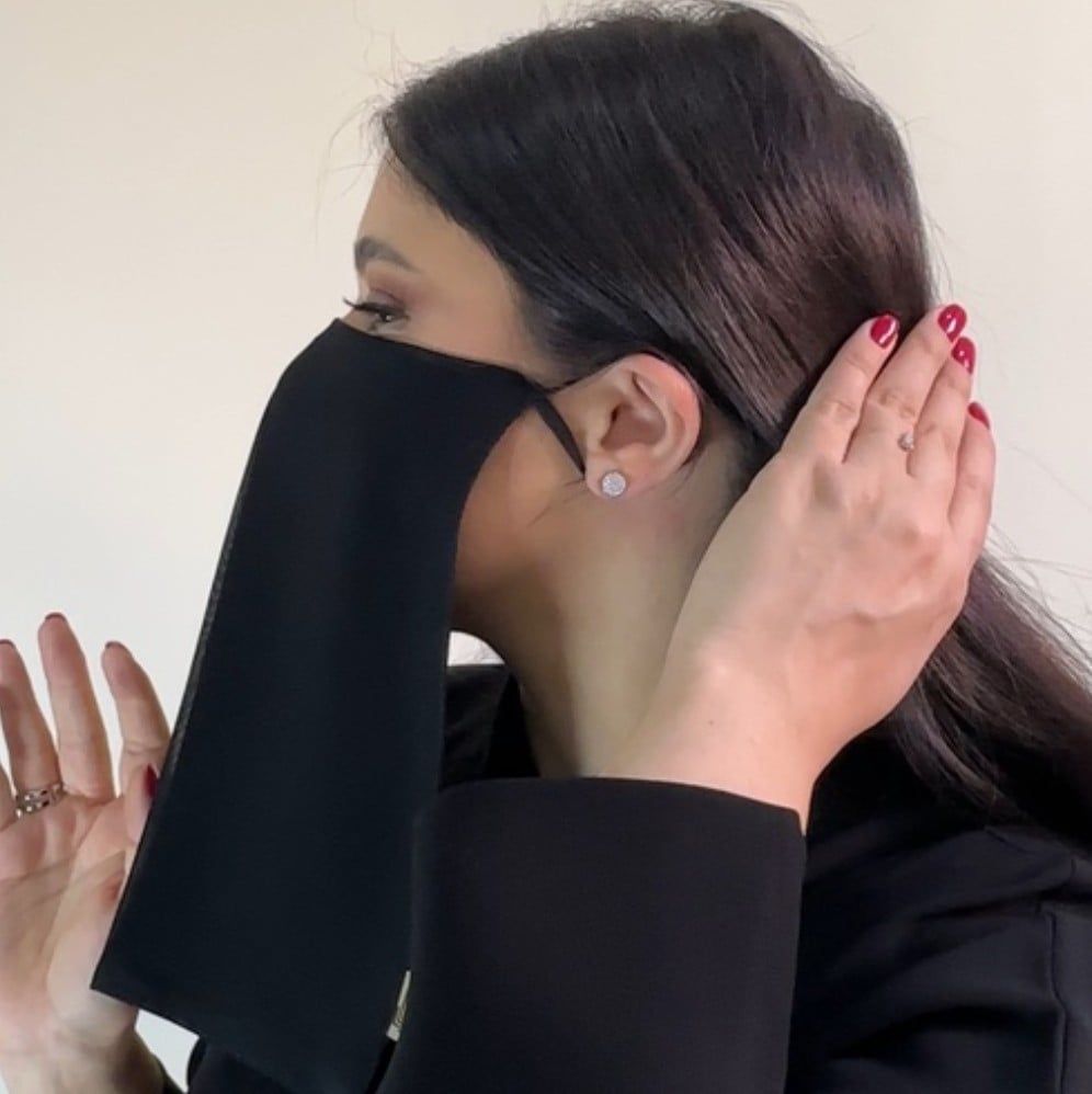 نقاب بفكرة نفس طريقة الكام ينحط على الاذون بس ومبطن ببطانة خام حرير اصلي