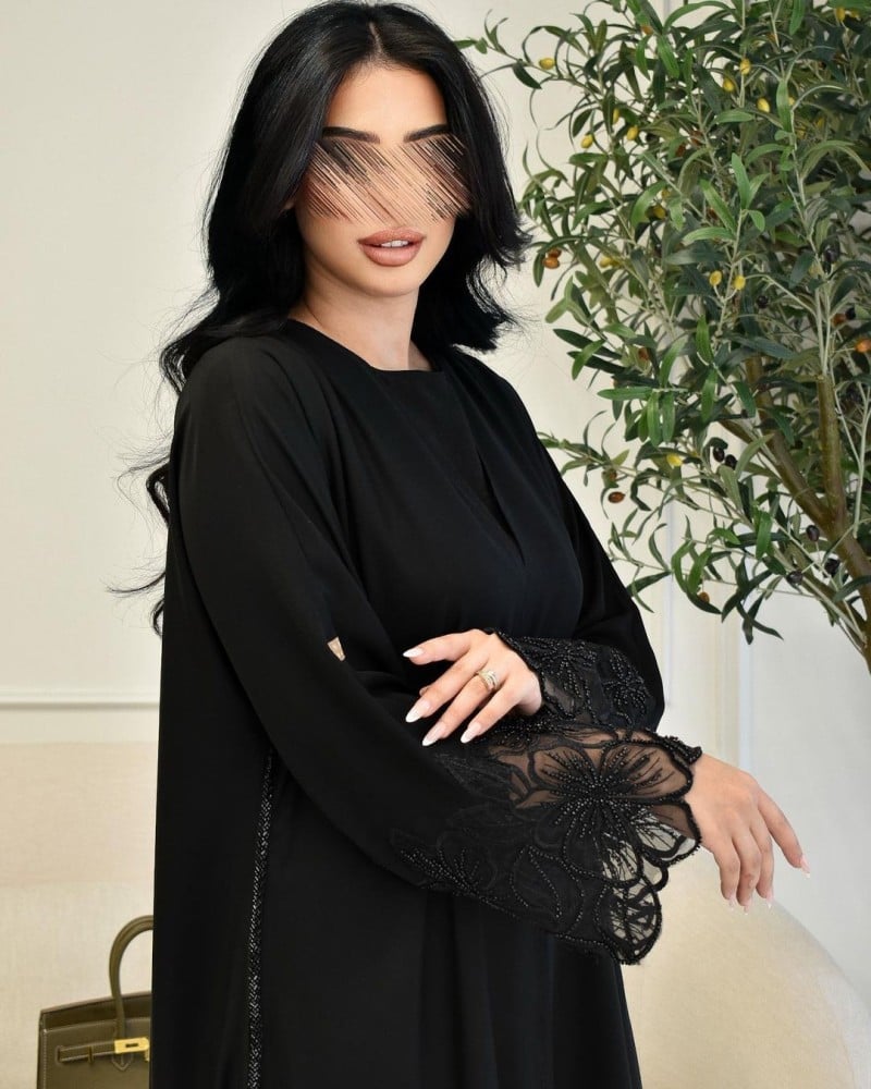 قماش انترنت بقصة الربع كلوش بالإضافة الى الشك اليدوي بالخرز الأسود