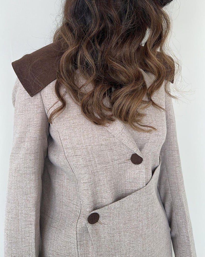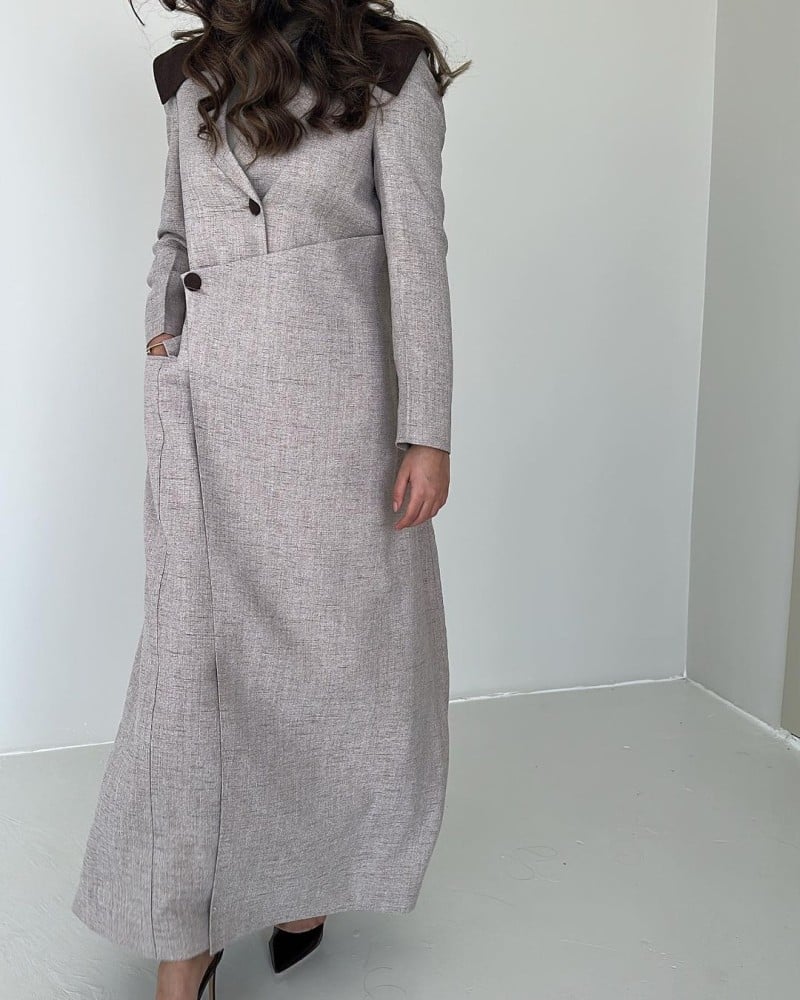 معطف طويل من مزيج الخيش باللون البيج. ابقِ أنيقًا ومريحًا