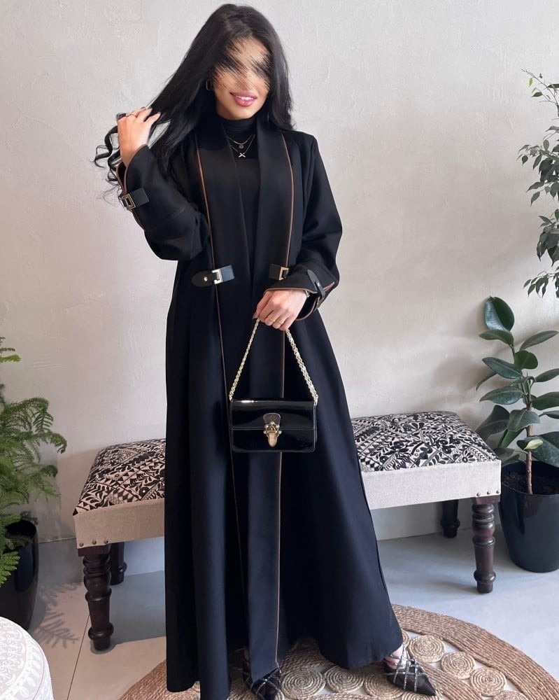 عباية قماش كريب سيراميك اسود