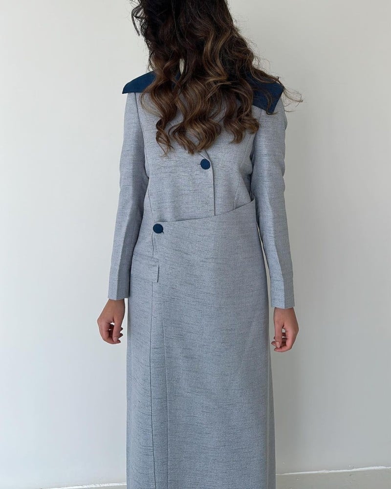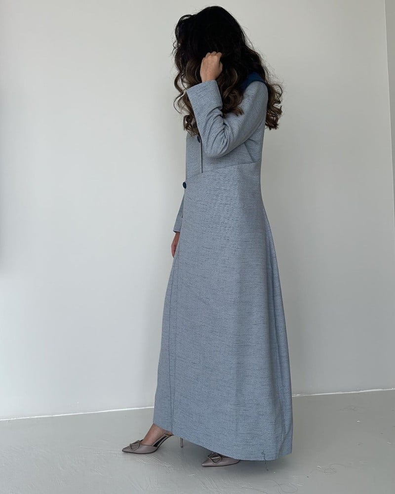 معطف طويل من مزيج الخيش باللون الازرق الفاتح. ابقِ أنيقًا ومريحًا