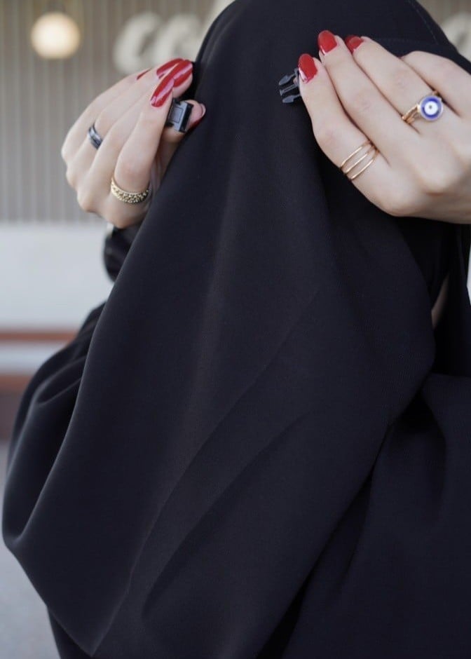 We show you a slanted mid elastic niqab designed with a smart clasp instead of traditional fastening. Comfortable and easy to wear. You can wear the niqab easily and quickly at any time without having to tie it. 9 inches long.