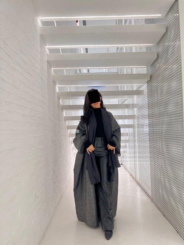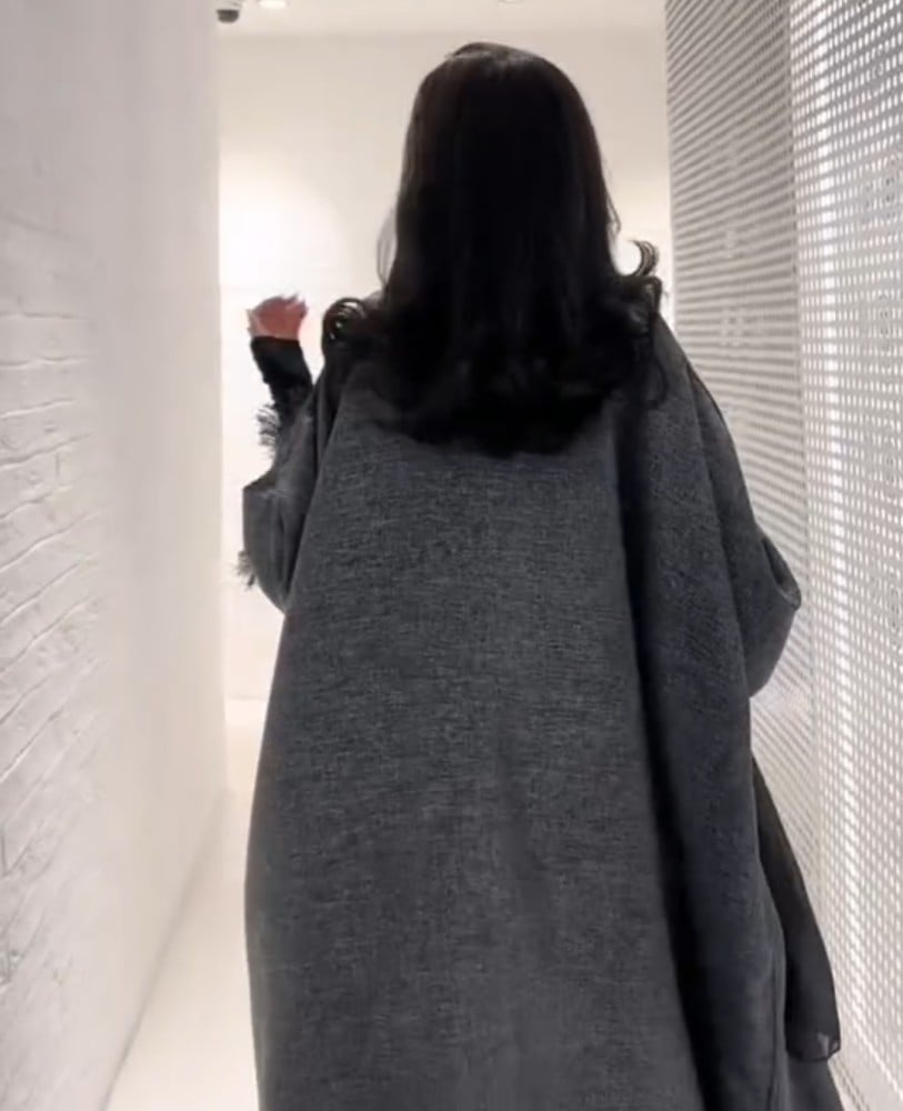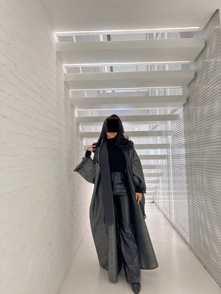 Winter abaya with gray and black two-strand wool fabric, half-bisht cut, with a plain black veil It is possible to modify the story and color. Please write the modification in the notes