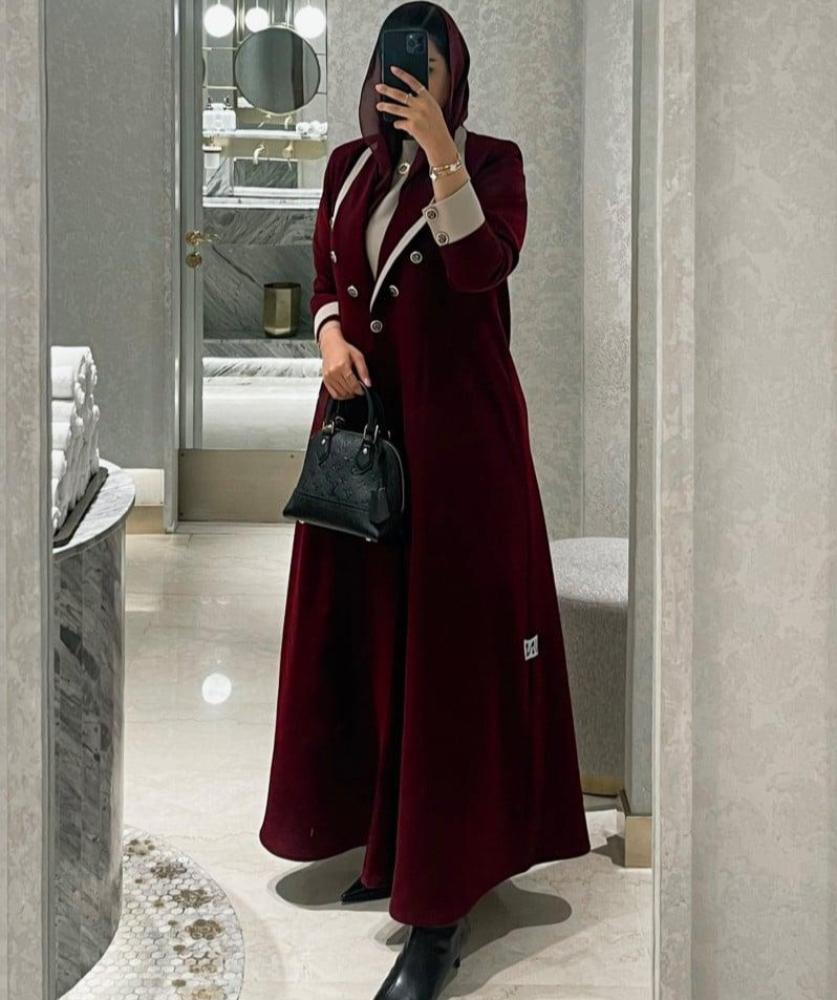 Formal abaya, maroon, Italian crepe, with crystal buttons